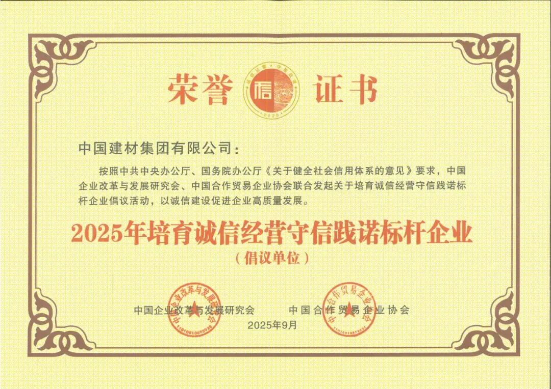 中國建材集團入選2025年培育誠信經(jīng)營守信踐諾標桿企業(yè)倡議單位