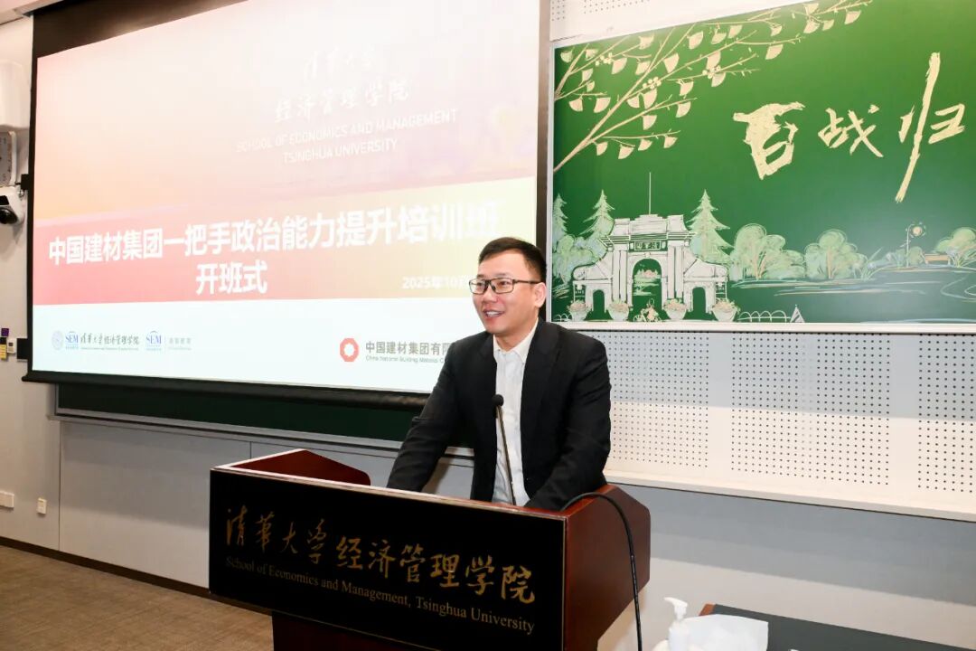 10月22日,中國建材集團(tuán)“一把手”政治能力提升培訓(xùn)班在清華大學(xué)經(jīng)濟(jì)管理學(xué)院開班。集團(tuán)黨委副書記、總經(jīng)理常張利出席開班式并作動員講話,黨委常委、紀(jì)委書記劉磊應(yīng)邀出席。清華大學(xué)經(jīng)濟(jì)管理學(xué)院副院長何平出席開班式并致辭。開班式由清華大學(xué)經(jīng)濟(jì)管理學(xué)院高管教育中心主任助理陳鳳主持。